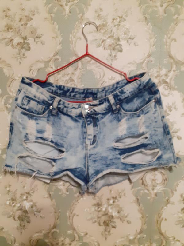 Джинсовые шорты короткие с декоративными потребностями и дырками)