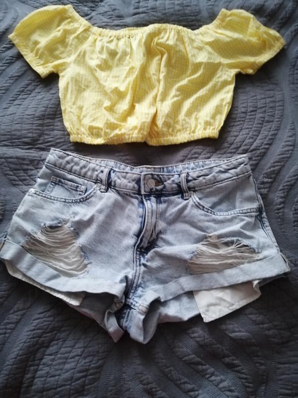 Джинсовые короткие шорты, не тянутся, средняя посадка. Длина по боковому шву 22 си ПОТ 40 см