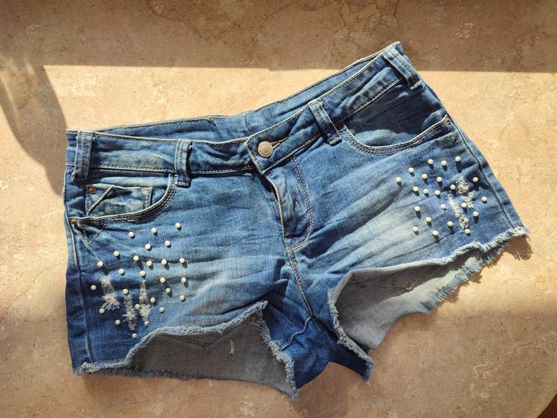 джинсові шорти пояс -35 см, посадка спереду -20 см, ззаду - 28 см, довжина - 25 см, в нозі ідуть вільні - 31 см, добре тягнуться
