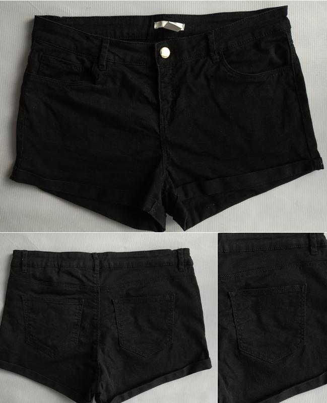 Размер указан eur38 Полу обхват талии 39-43 см,полу обхват бедер 49-54 см, высота посадки 25/40 см, длина по боковому шву 27 см, ширина штанины 32 см Состав:98% котон 2% еластан, потерта пуговица,в остальном все в идеале