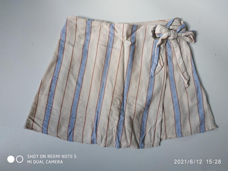 В цену заложенная Комисцией 15%Шафе состояние новых дефектов нет! 100% вискоза, мягкая, тонкая, не светится. цвет беж в голубую полоску и коричневую. размер указан 10/38, смотрите по меркам обхват по поясу, на резинке 72 см тянется до 82 см обхват стегон 110 см посадка 34/ 42 см длина 37 см, шаг 5 см обхват штанини 72 см
