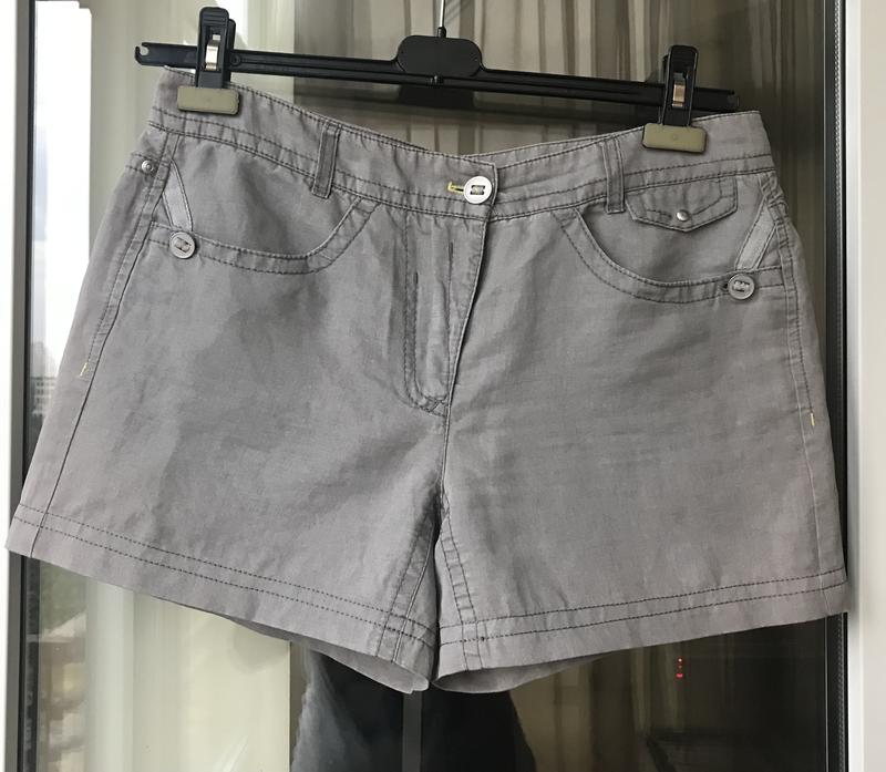 Шорты летние, состав: 59% котон, 41% лён, цвет серый, состояние идеальное! ПОТ-43 см., ПОБ-51 см., посадка спереди-23 см., полуобхват ширины бирючины внизу-32 см. Отвечу на все вопросы!