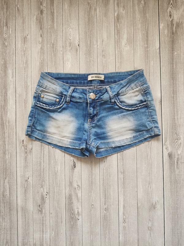 Джинсовые шорты на размер 38/M (указан на бирке 40, но маломерят). Карманы спереди и сзади. Длина: 21 см (по наружному боковому шву). ПОТ: 35 см ПОБ: 45 см. Тянутся. Пересылка по Украине.