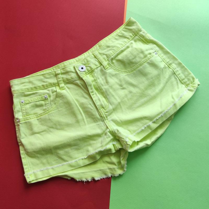 Жовті літні шорти фірми FB sister. Мінус на останньому фото (закошлачено) ЗА: пояс 41, стегна 51. Висота спереду 23.5, ззаду 35. Висота по боковому шву 28