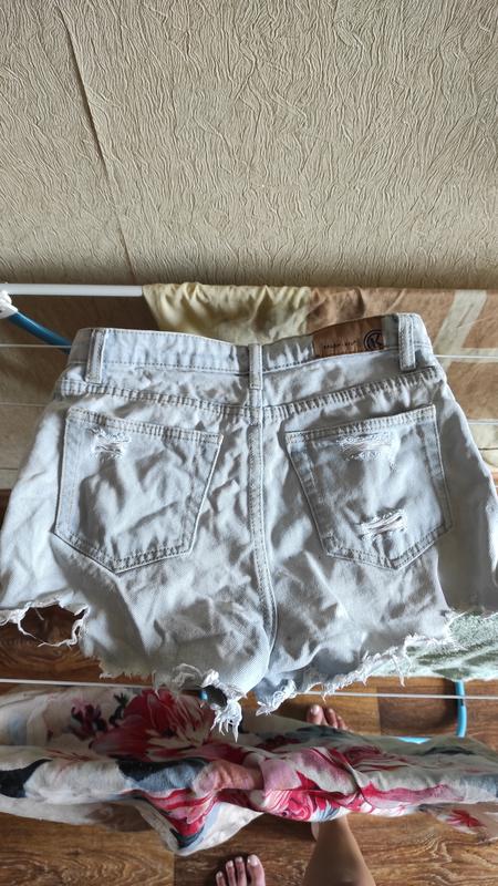 Стильные джинсовые шорты с высокой талией. Есть нюанс - маленькие пятнышки. В носке они незаметны, но когда смотришь на лежащую вещь, бросаются в глаза. Дефект учтен в цене