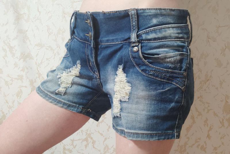 Короткие джинсовые шорты на низкой посадке, с потёртостями и дырками. Размер: 28 Пояс 37см Бёдра 44см Длина 25см Купила давно, не носила. Возможен торг Оплата на карту, наличными при встрече, отправлю по почте, подъеду к метро. Самовывоз Троещина