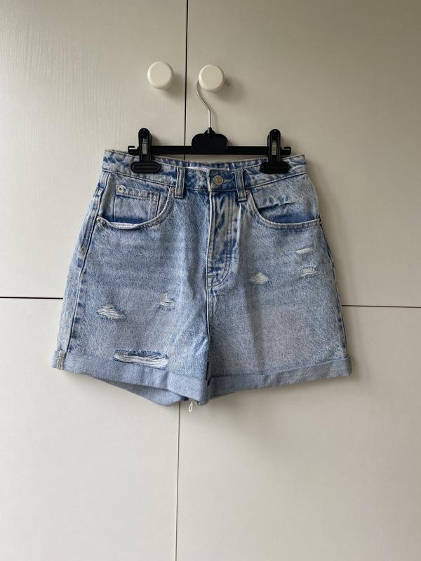 Шорты, 100% коттон, голубые, ПО талия - 31 см., ПО бедра - 49 см., длина от пояса до внутреннего шва спереди - 32 см., длина изделия - 36 см.
