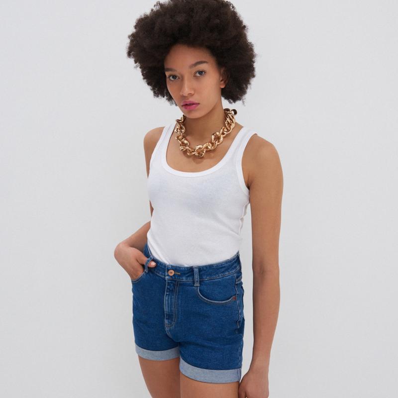 Розмір: 36, 38 36: висота посадки спереду 30 довжина 35 см по зовнішньому шву, півобхват в поясі 34 півобхват бедер 44 38: висота посадки спереду 30 довжина 36 см по зовнішньому шву, півобхват в поясі 36 півобхват бедер 46