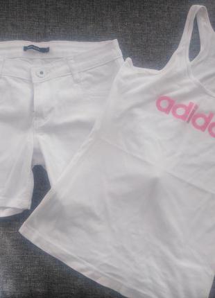 Білі, джинсові шорти. Ширина в поясі - 36 см. Довжина - 30 см. Бедра - 40-42 см. Тягнуться.