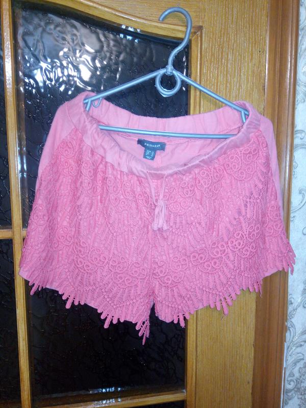 гарні шорти пояс на куліске можна регулювати розмір перед прикрашений тканина тягнеться колір блідо морковны стан хороший заміри на фото