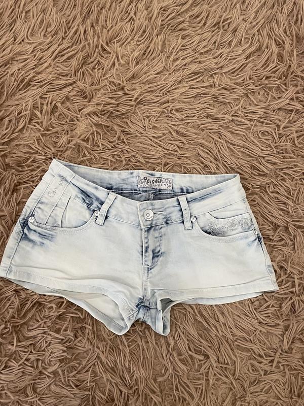 Короткі джинсові шорти, з карманами. Заміри: довжина шортів зпереду-19 см, ззаду-26 см, ПОТ-36 см, ПОС-47 см.
