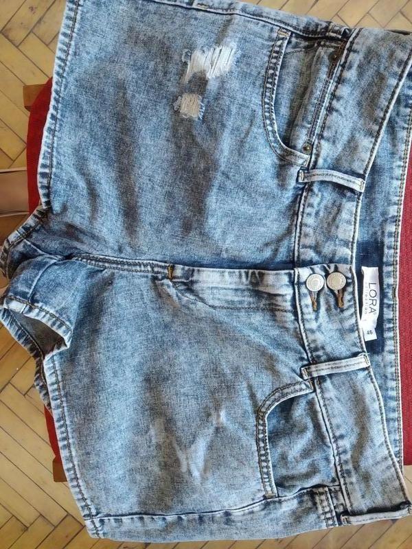 Отличные джинсовые шортики, состояние новых. ПОТ 47, ПОБ 54, длина 32, размер указан 46(14), не тянутся