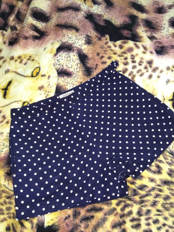 Шорты темно- синие в белый горошек ,с боковой молнией,посадка высокая.