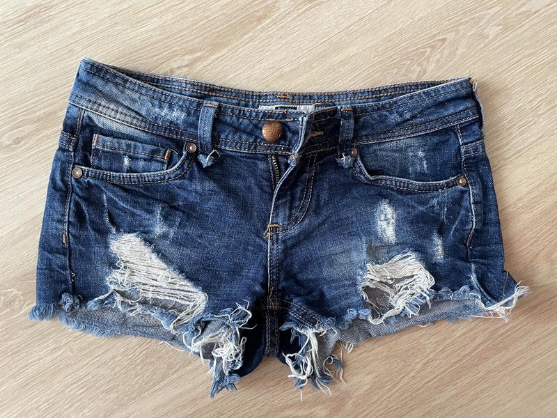 Короткие стильные джинсовые шорты Bershka в хорошем состоянии, редко носились. Размер 32. Длина 22см, ширина в поясе 34см