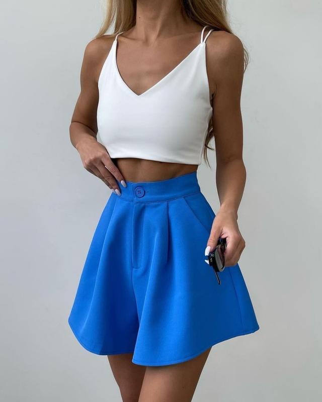 #Шорты Артикул: 510-5347 Цвет: молоко , электрик , трава , голубой , чёрный Размеры: 40, 42, 44 Материал: костюмка