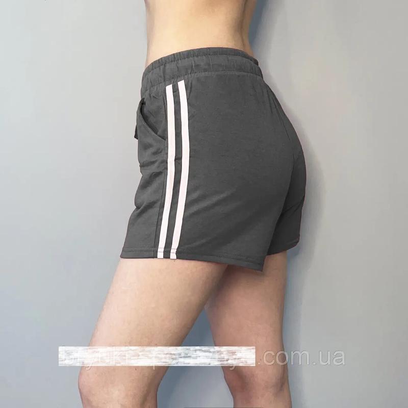 Женские спортивные шорты от производителя одежды компании IOSSO. Шорты из легкого хлопка красиво ложатся по фигуре. По бокам расположены косые карманы. Наружные швы украшают 2 белые полоски. Пояс - резинка с завязкой наружу. 95% хлопка в составе Дл.32 см, вн шов 10 см Размеры 46-48, 48-50 Цена 235грн Модель классная ! Цвет серый