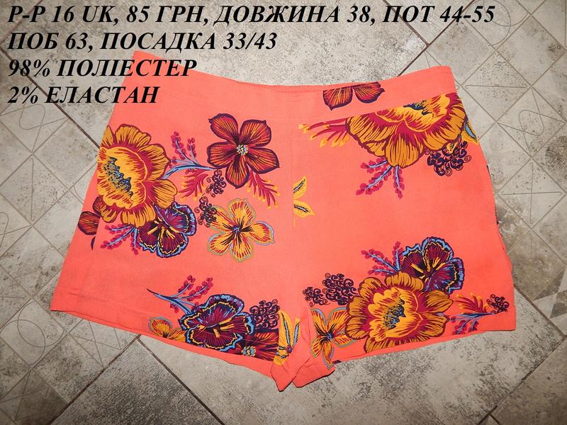 Яскраві шортики, розмір 16uk, заміри на фото. Легка тканина, яскраві кольори, збоку є кишені, знизу -манжети.