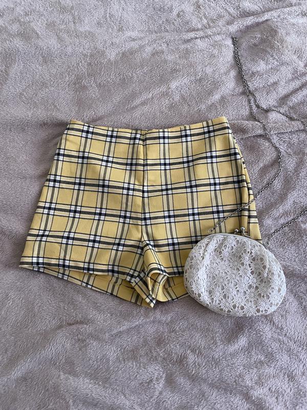 Літні шортики в клітинку,жовтого кольору .класно розбавлять образ …Гарно дивиться з білими кедами і білою футболкою,акцентно.За детальнішими фотками пишіть .