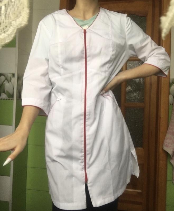 Новенький білий медичний халат. Довжина халату -86см. Талія-42см Рукав -41см(45) (від плеча)