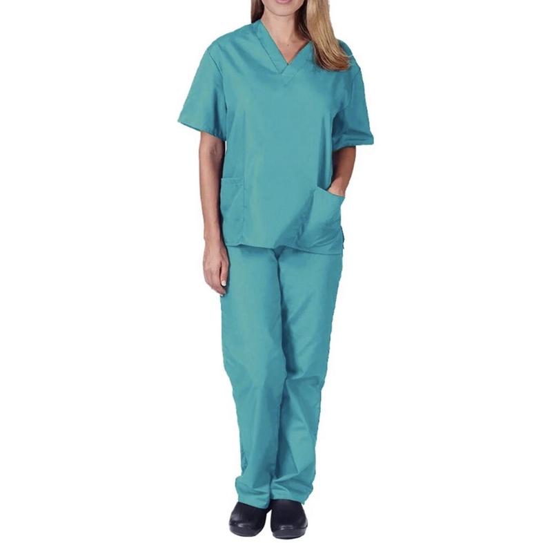 Новый медицинский костюм , есть большие размеры В наличии 48/50/L/XL Цвет персиковый и бирюза Очень хорошо на лето , ткань легкая ,дышащая , приятная к телу , замеры по запросу . Свободные ровные брюки на завязке на талии , блузка удлиненная с карманами