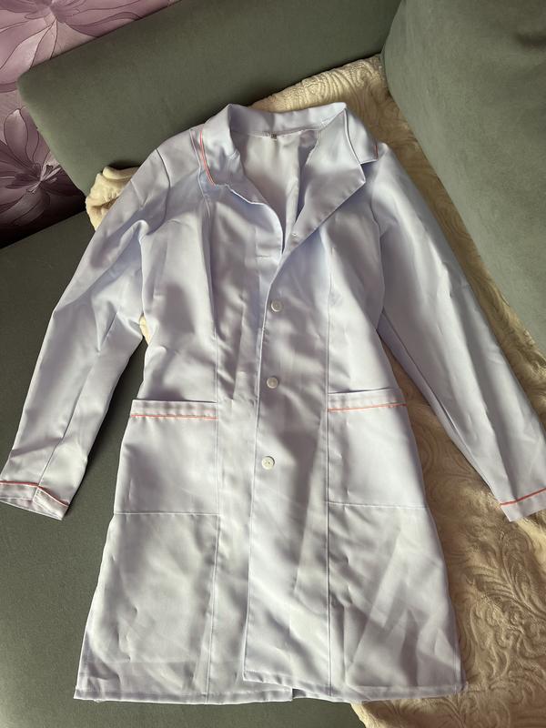 Дуже зручний, на світлі віддає блакитом. напівобхват грудей 47 , напівобхват стегон 49, довжина рукава по зовнішньому краю 59 , довжина 91,5 .