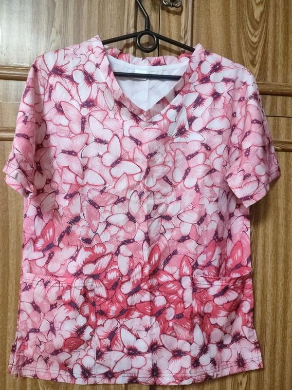 Новая медицинская куртка 44-46 р: плечи 40 см, грудь 50 см, талия 47 см, бедра 50 см, длина 62 см. Имеет разрезы по бокам, два кармана. Тканина не тягнеться. Цена 280 грн.