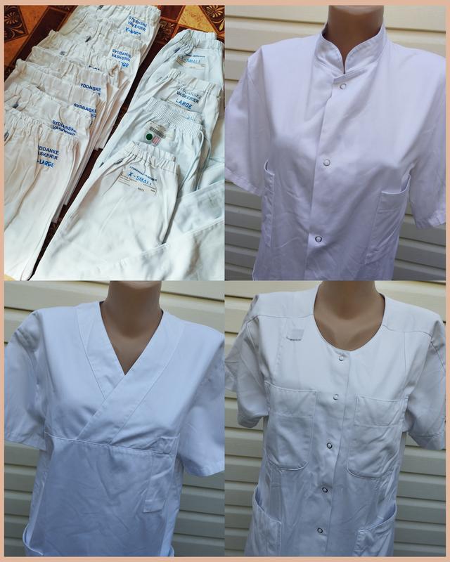 Медицинские халаты, мишки рубашки,для женщин, мужчин, большой выбор размера,на кнопках, большие карманы! Ткань прочный плотный картон! Не секонд! Не синтетика!