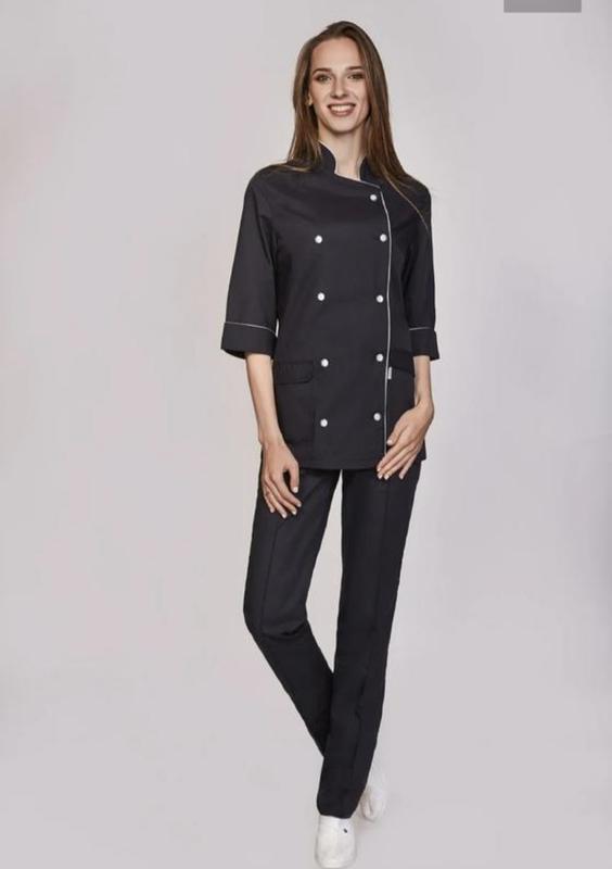 Кітель для кухаря чорного кольору 46размера. Точні виміри: напів обхват грудей-49см. підлозі обхват стегон-49-50см. довжина-67см.