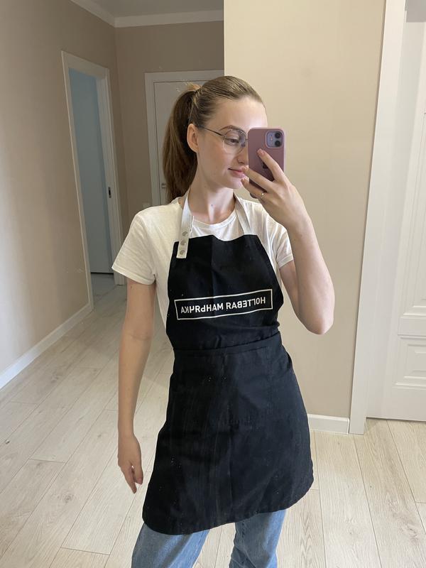 Черный фартук с надписью и кармашком