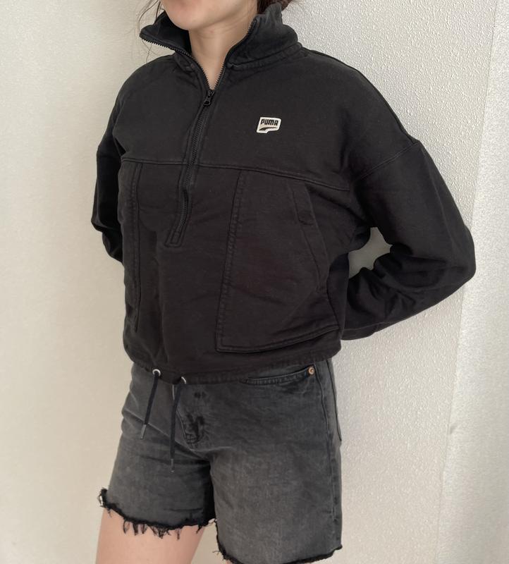 Черная спортивная кофта свободного кроя - Длина рукава (от горловины): 67 см - Длина: 49 см - Ширина под подмышками: 51 см Рост девушки на фото 164 см