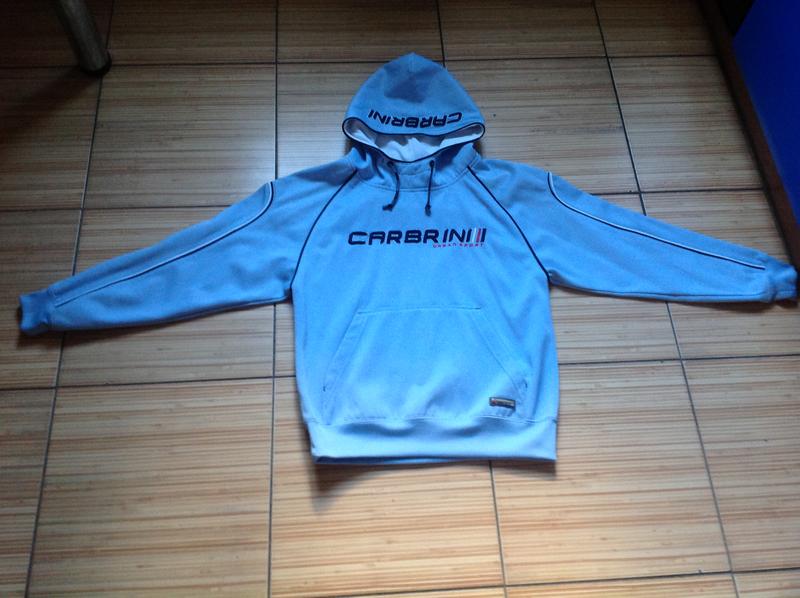 Реглан "Carbrini" оригінал.Дуже красивого небесно-блакитного кольору.Вишитий Логотип бренду,опуклі букви,ефектно виглядає вишивка.Капюшон незнімний,всередині біла тканина.Склад 100% поліестер,з внутрішньої сторони м'який начісування,схожий на фліс (без підкладки).Тканина має гарне переплетення ниток (фото 4).Манжети і нижня гумка нерастянуты.Нюансів немає.Дірок,зачепів,потертостей немає.НОГ 47 см,НОТ 44 см,довжина рукава від шиї 64 см,довжина виробу по спині 58 см.Дивіться мої інші оголошення.