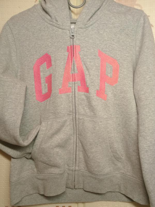 спортивная кофта, утепленная, фирмыGAP KIDS на14-16 лет. 77% СOTTON, 23 полиэстер в идеальном состоянии. Яркая блестящая надпись на сером очень классно смотрится.длина 55, ширина 48, рукав 55