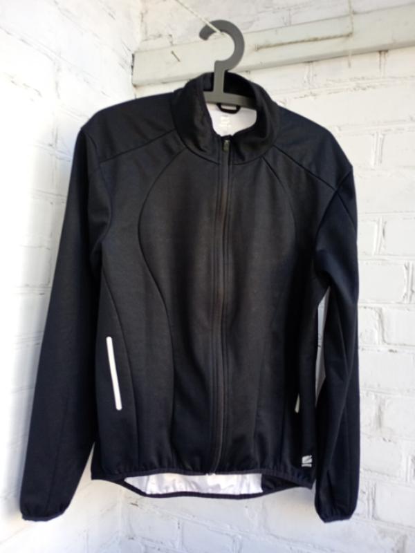 фирменная спортивная кофта в идеальном состоянии есть пар едва заметных зацепок размер указан 48 пог 53см в плечах 47см длина рукава от плеча 64см длина изделия по спине 68см белая часть эластичная, черная достаточно плотная, перфорированная