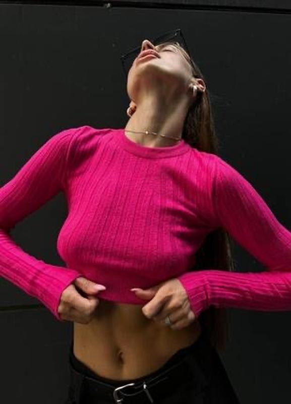 Идеальное состояние, ярко-розовая, короткая кофта в рубчик. Замеры и доп фото в лс