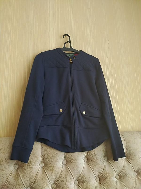 Брендона спортивная кофта на молнии. Красиво ложится по фигуре. Подходит для велоспорта, пробежек и фитнеса. Из нюансов - отсутствует деталь от кнопки на кармане. При использовании вообще незаметно. В цену учтены. Длина -61 см Длина рукава от плеча-61 см Полуобъем груди -47 см Полуобъем талии -44 см