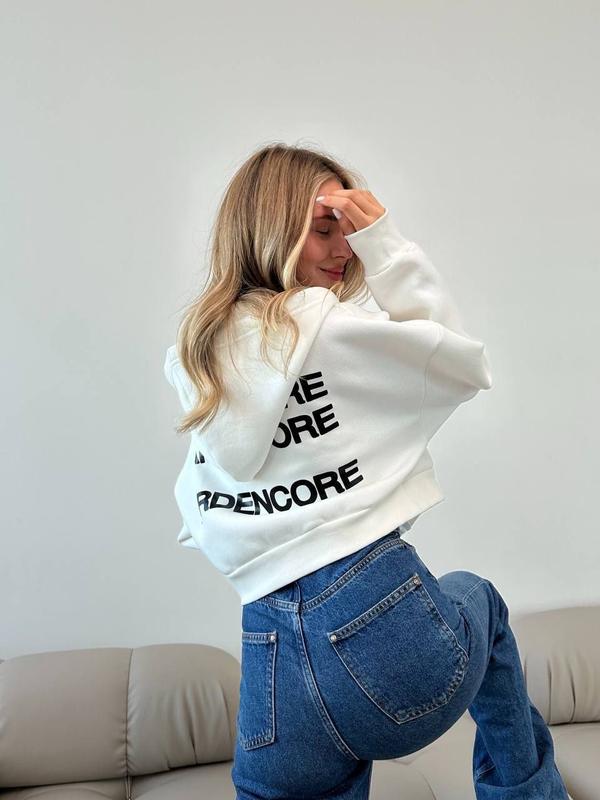 Фото реал Кофта Арт.201 Тканина: тринитка на флісі, манжети рібана Розмір: 42-46, універсальний Колір: білий, чорний Найкраще осіннє рішення стильна кофта з принтом на спині, з нею можна створювати різні багатошарові образи або просто носити окремо Ціна 650 грн