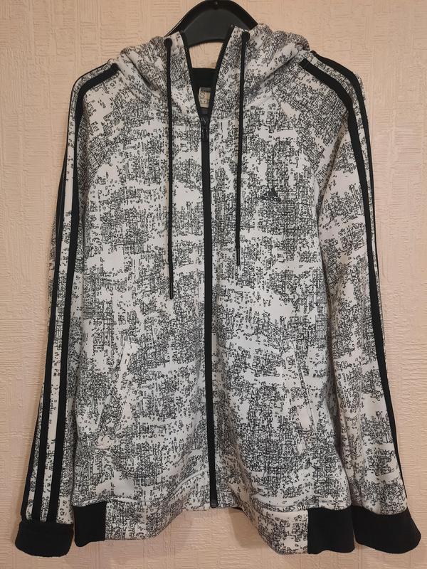 Оригинальная спортивная кофта в хорошем состоянии фирмы adidas.Пив обхват по груди 50см, длина рукава от шеи 68см, ловля изделия 60см.
