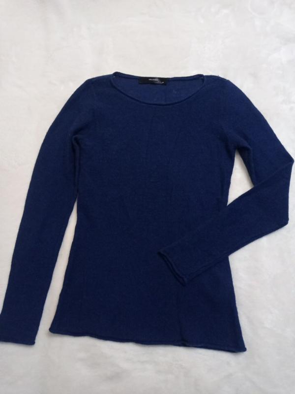 кофта женского немецкого бренда. легкая, полупрозрачная 100% кашемир, темный синий цвет. размер XS. поп 34 см, подмышками 38 см, пот 32 см, длина 58 см, длина рукава 61 см. приятная к телу