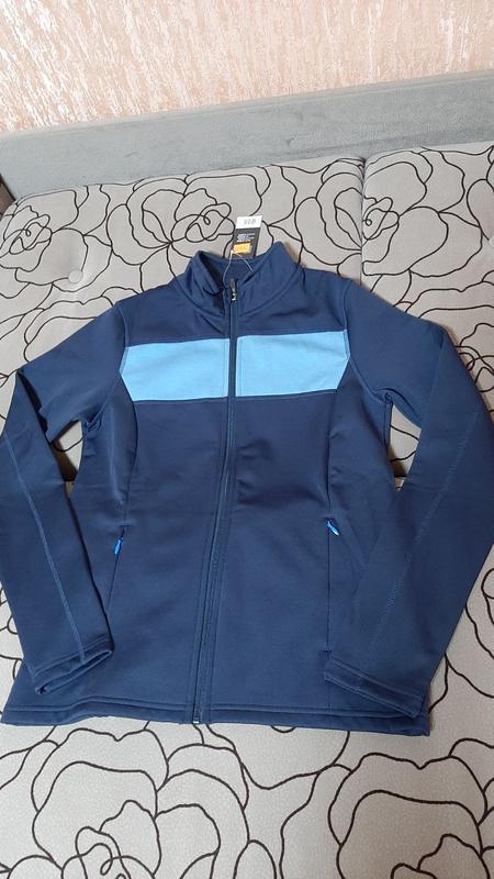Отличная женская спортивная кофта.Комфортная ,стильная,теплая с начесом. Модель на молнии для спорта и на каждый день. Размер указан S 36-38. Состав : 94 % полиэстер ,6 % эластан .Замеры : длина -60 см,плечи 36 см,рукав 65 см,ПОГ 43 см. Германия.