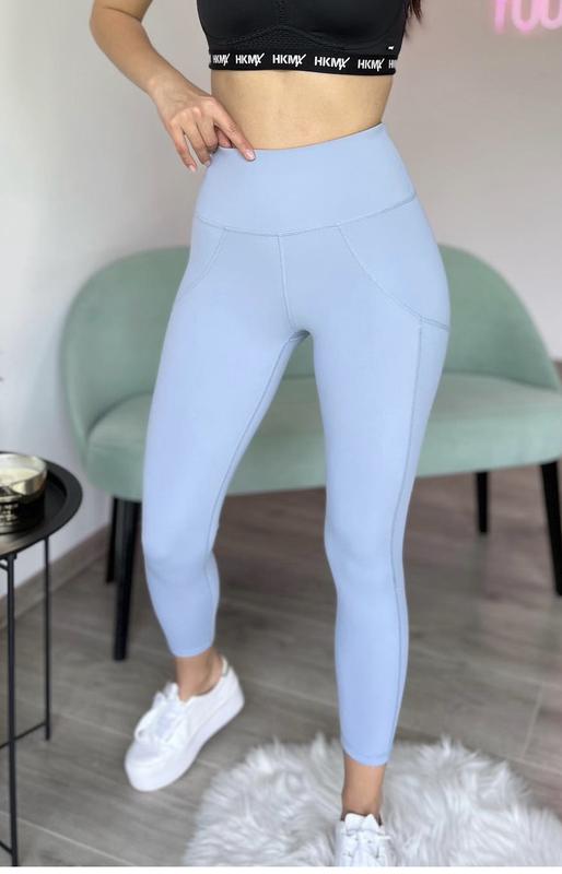 Дуже якісні лосини, непросвічують, еластичні. В ніжно блакитному кольорі. Розмір s На обʼєм талії до 66 см. Обʼєм стегон до 97см. Дуже приємні на дотик та еластичні.