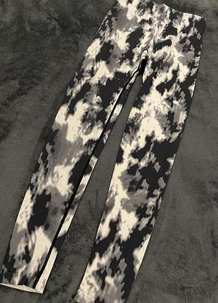 Ткань хорошо тянется. Заміри на фото. Модный ныне принт)) В хорошем состоянии. Высокая посадка Ткань плотная, не просвечивает.