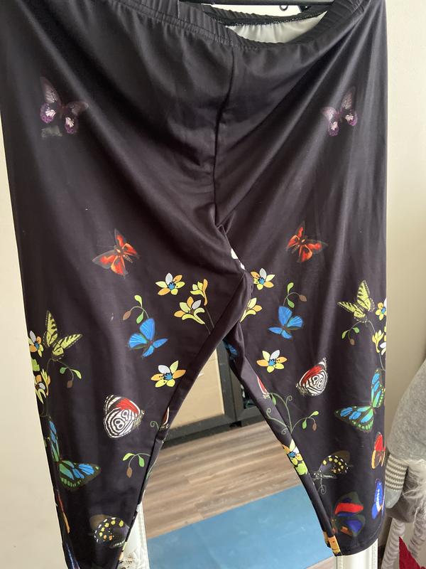 Лосины чуть ниже колена с разноцветными бабочками, полиэстер -92%, спандекс - 8%., размер XL.