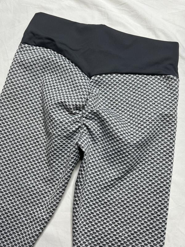 Лосины спортивные из структурированной ткани с push up Высокая посадка, широкая резинка, хорошо тянутся 92% полиэстер 8% еластан Длина 91.5 Талия 30 Стегна 43 Шаговый шов 66