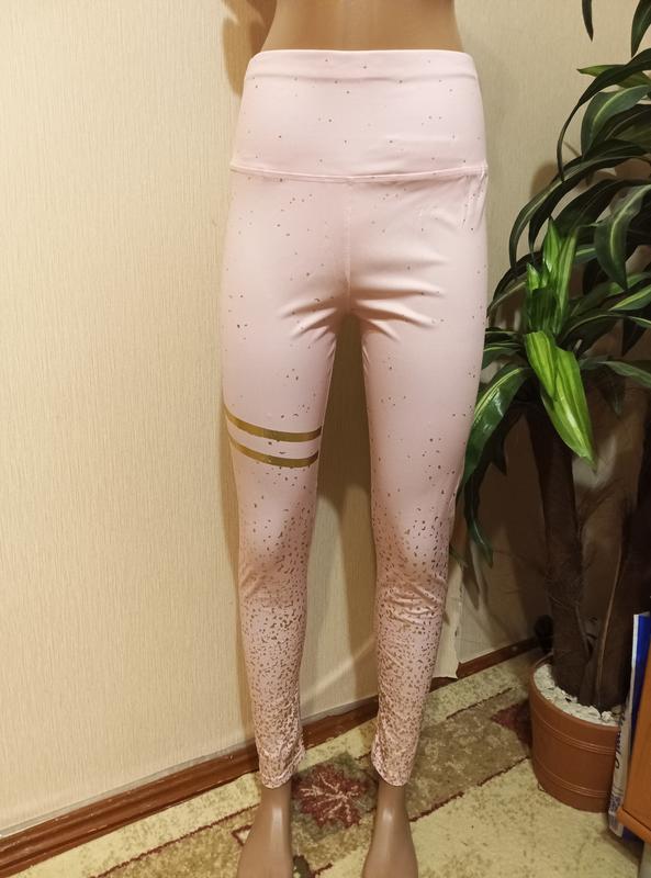 Лосины, легенсы для фитнеса новые но без этикетки. Размер L.. Нежный, приятный розовый цвет с золотым принтом. ПОТ-33-45 ПОБ-45-60 Длина -97 Посадка-30