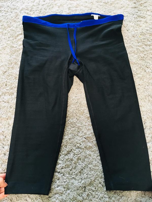 Спортивні лосіни дуже класної якості. Стан нових. Розмір S. На попу до 96 см будуть ідеально. Плотненькі, не просвічують. Є ззаду внутрішня маленька кишенька. Колись зверху була спідничка, але вона обрізана. Дефектів немає. Якщо носити під майку - футболку нічого не буде помітно.