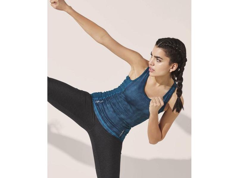 Плотная майка Crivit. Спортивная форма одежды - форма для тренировок Оптимально подходит с эластаном Противоскользящая полоса на подоле обеспечивает надежную посадку Отражающий элемент Оптимальный перенос влаги и быстрое высыхание благодаря гидрофильному покрытию Размер M Майка в состоянии новой вещи. Замеры: Длинна-62 Подмышки-43 Ширина внизу-43