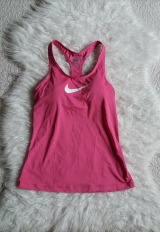Спортивная майка Nike, внутри топ с поролоновыми вкладышами. Длина 60 см, полуобхват топа под грудью в ненатянутом виде 31 см, тянется до 39 см, ПОТ 35 см, ширина внизу 43 см, ширина чашки 14 см, высота чашки 12 см