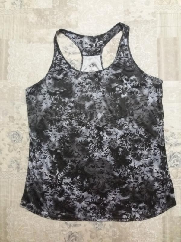 майка спортивна розмір UK 16-18 заміри: напівобхват грудей (см) - 51 напівобхват бедер (см) - 55 довжина (см) - 70 добре тягнеться