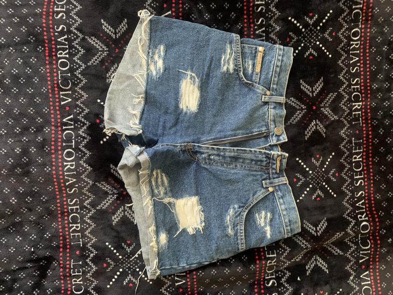 Шорты джинсовые в синем цвете. Потертые. ПОТ - 37 см ПОБ - 46 см