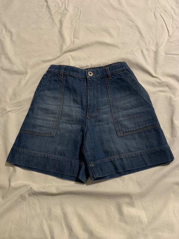 Джинсовые удлиненные шорты с высокой посадкой. Фото на теле, дополнительные фото и замеры в личные сообщения.
